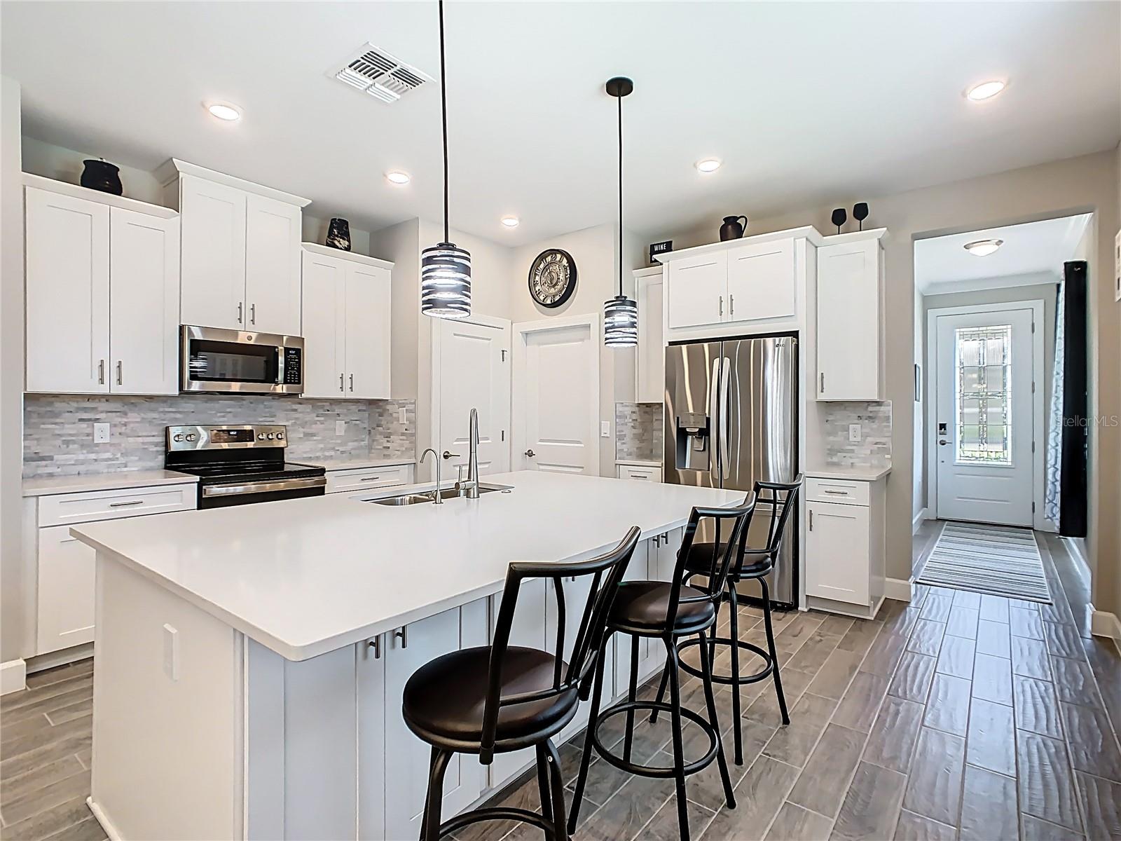 Don't miss the opportunity to purchase this nearly new 2022 built Amalfi model home in the desirable Viareggio neighborhood at this amazing price. This home has only been used for 2 seasons for 3 months each season. Price includes home as shown and golf cart. Tastefully decorated and updated. Why buy a Villa or older home when you can own this single like new home for the just about the same price. TILE FLOORING THROUGHOUT MAIN AREA AND WET AREAS, KITCHEN ISLAND, PENDANT LIGHTING, 36"CABINETS WITH MOLDING,SS LG REFRIGERATOR WITH SMART GRID WIFI, WATER, ICE CUBES, AND CRUSHED ICE IN DOOR, UNDER ISLAND ADDITIONAL CABINETS WITH SHELVING, DOUBLE SS SINK WITH SINGLE HANDLE FAUCET, AQUASANA PURIFIED WATER DISPENSER, AND PUSH BUTTEN GARBAGE DISPOSAL. QUARTZ COUNTERS, NEUTRAL TILE BACK SPLASH, AND PANRTY. CEILING FANS IN GREAT ROOM, AND BOTH BEDROOMS, LG WASHER/DRYER, REFRIGERATOR, WINDOW TREATMENTS, FURNITURE AND GOLF CART INCLUDED. Homeowners Association fee includes BlueStream TV and Internet, lawncare, lawn irrigation, and 24 hour gated security. ***Solivita is an active adult 55+ community located in Kissimmee, Florida. It is approximately 50 minutes from Disney World & the Orlando International Airport. Solivita has a total of 5,470 homes. Approximately 10,000 - 11,000 persons live in Solivita during the winter while approximately 7,500 live in Solivita during the summer. Enjoy your active years in this piece of paradise. Solivita amenities include: - a manicured SOFTBALL diamond & field - 36 holes of CHAMPIONSHIP GOLF that can be played by joining the Stonegate Golf Club or paying as you go - 2 STATE of the Art AMENITY centers with updated exercise equipment, yoga studio & meeting rooms - 3 restaurants - 14 HEATED POOLS 17 PICKLEBALL courts - 9 TENNIS courts - 4 BOCCE BALL courts - 4 SHUFFLEBOARD courts - 3 HORSESHOE pits - a BILLIARDS room - miles of bike paths - 2 DOG PARKS (Small & LargeDogs) - Corn Hole - Tot Lot PLAYGROUND - COMMUNITY GARDEN - over 250 resident clubs. The HOA: - maintains the LANDSCAPING & IRRIGATION systems in the common areas as well asat individual homesites - maintains the roads throughout the community - PROVIDES SECURITY with gate guards and mobile patrols including the Polk County Sheriff - allowsAUTOMATED GATE ACCESS for residents via license plate readers - provides residents with Fiber Optic Internet & TV service.***Poinciana Lakes Plaza is a MAJOR NEW SHOPPINGCENTER that opened directly across from the Solivita Main Gate in Summer of 2024. It features Sprouts Grocery, TJ MAXX, Ross, Burlington, Rack Room Shoes, 5 Below, Ulta,Outback, First Watch, 5 Guys, Urgent Care, Dentist, TD Bank, Petco, Mike's Subs & Hair Cuttery PLUS MORE TO COME.***